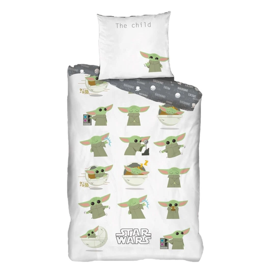 Das Bettwäsche Set mit Baby Yoda ist für treue Star War Fans genau das richtige. Das süße und neugirige Wesen bringt mit seinen vielen Gesichstausdrücken gute Laune ins Schlafzimmer.