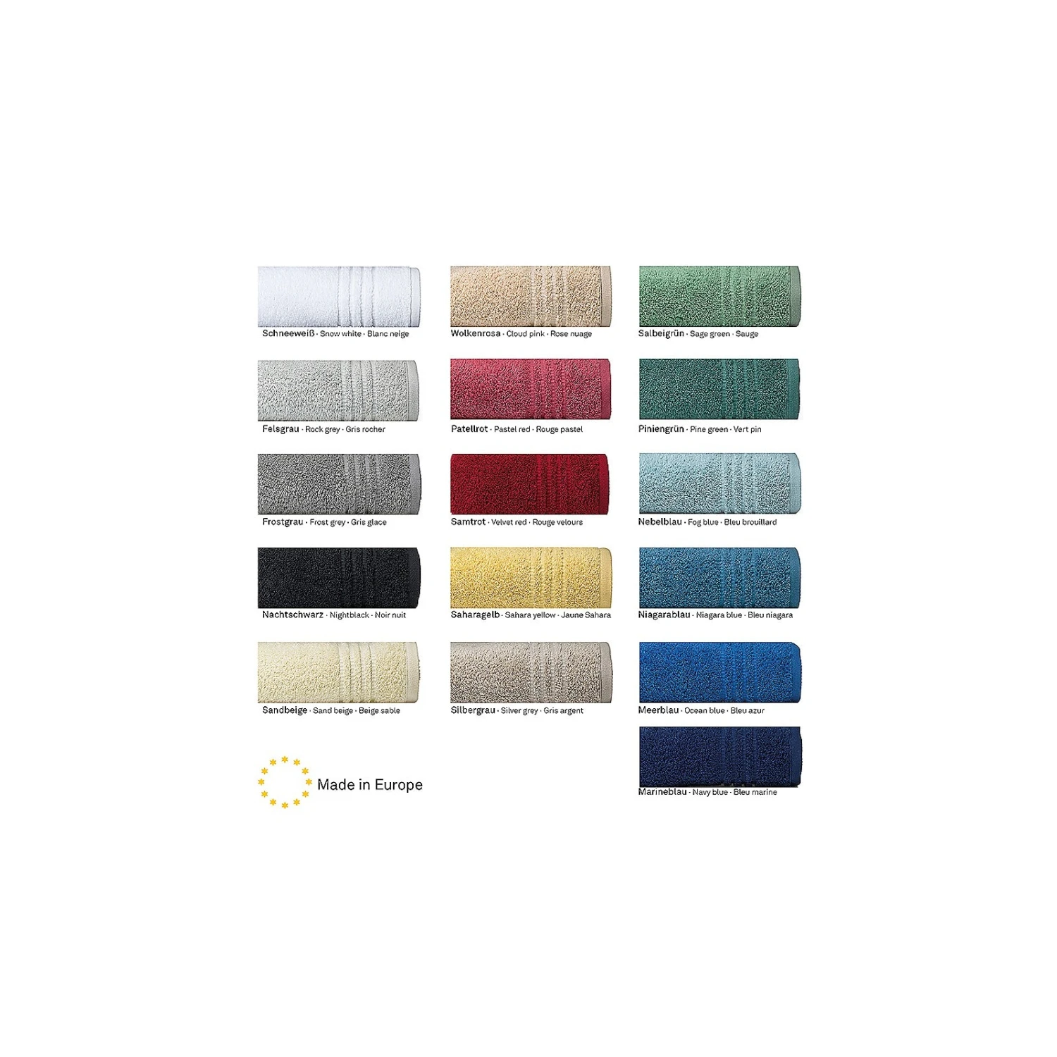 Ein Handtuch darf in keinem Badezimmer fehlen. Steigen Sie aus der Dusche oder aus der Badewanne und spüren Sie das weiche und hochwertig verarbeitete Badetuch LEONORA von kela. Wählen Sie bei der Badtextil-Serie Leonora zwischen verschiedenen Farben und Größen die passende Version aus und freuen Sie sich auf angenehm weiche Handtücher aus 100% Baumwolle in Premium-Qualität. Durch die Vielfalt der Farbvarianten findet sich für jedes Badezimmer die richtige Kombination, um dem Bad den letzten optischen Feinschliff zu verpassen. Das Badehandtuch hat eine Größe von 70×140 cm. Zu dieser Handtuchserie finden Sie außerdem passende Waschhandschuhe, Gästehandtücher und Handtücher für den Alltagsgebrauch. Sie erhalten dieses Badetuch in folgenden diversen Farben: - schneeweiß- felsgrau- frostgrau- nachtschwarz- sandbeige- wolkenrosa- pastellrot- samtrot- saharagelb- silbergrau- salbeigrün- piniengrün- nebelblau- niagarablau- meerblau- marineblau