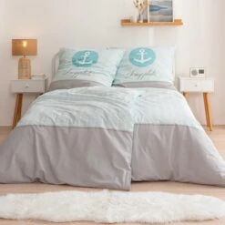 Bettwäsche-Set Biber „Anker Liegeplatz“ In Mint / Grau (4-teilig)