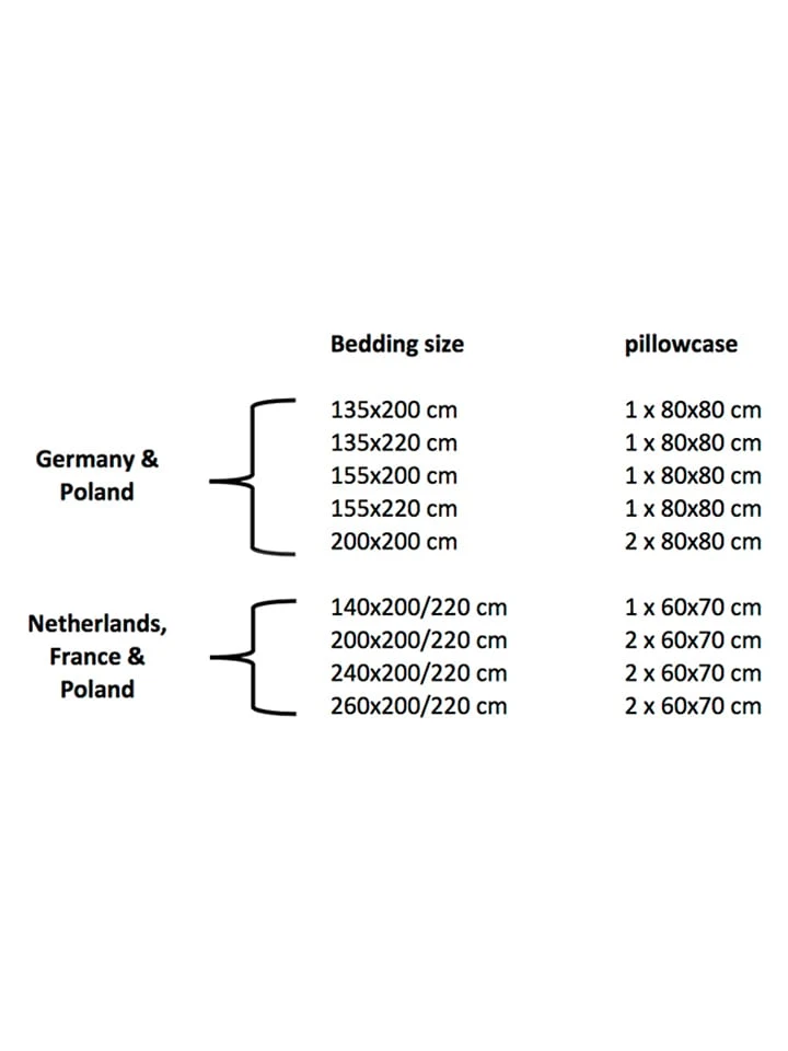 – bei Größe 140 x 200/220 cm, 135 x 200 cm und 155 x 220 cm: 1 Bettbezug und 1 Kissenbezug