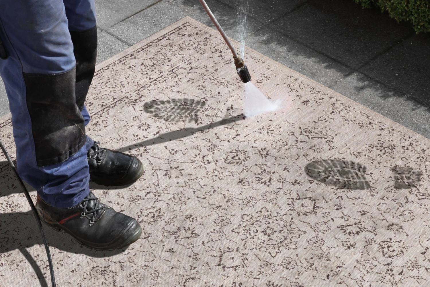 Der Gartenteppich besteht zu 100 % aus Polypropylen – einem robusten, wetterbeständigen Material, sodass er Sonne, Wind und Regen problemlos standhält.
