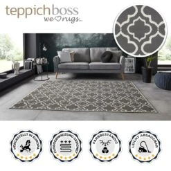Hier werden zwei Webtechniken miteinander verbunden, dadurch entsteht ein interessantes 3D Design für den Boden.
