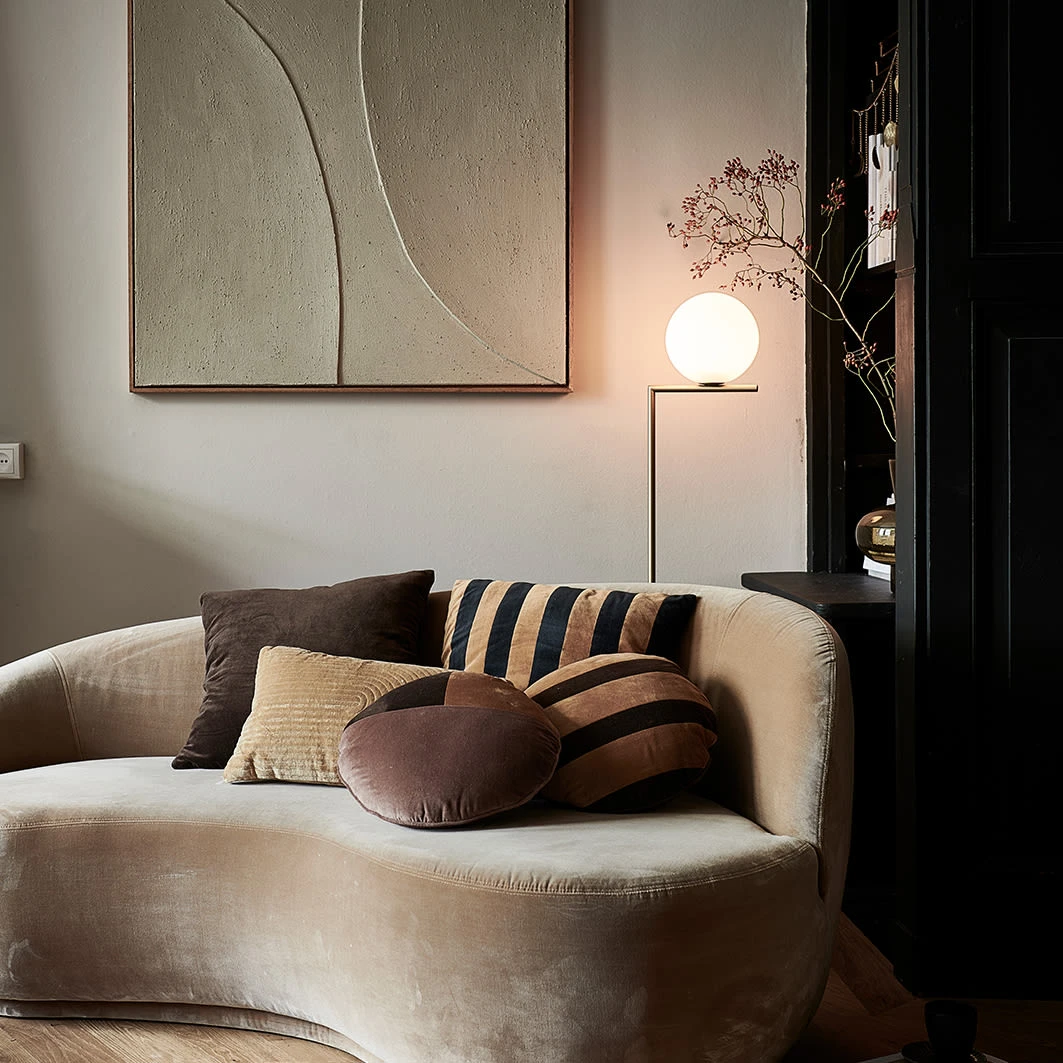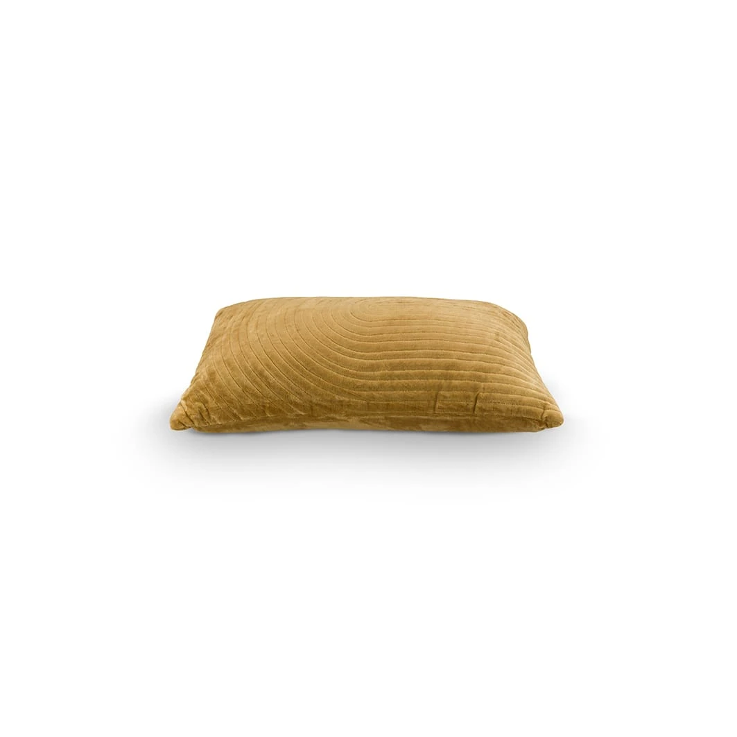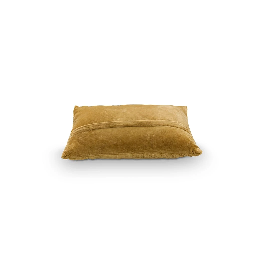 Dieses rechteckige Samtkissen von vtwonen in der Farbe Ocker ist aus Baumwolle gefertigt. Schön für die Couch oder das Bett.