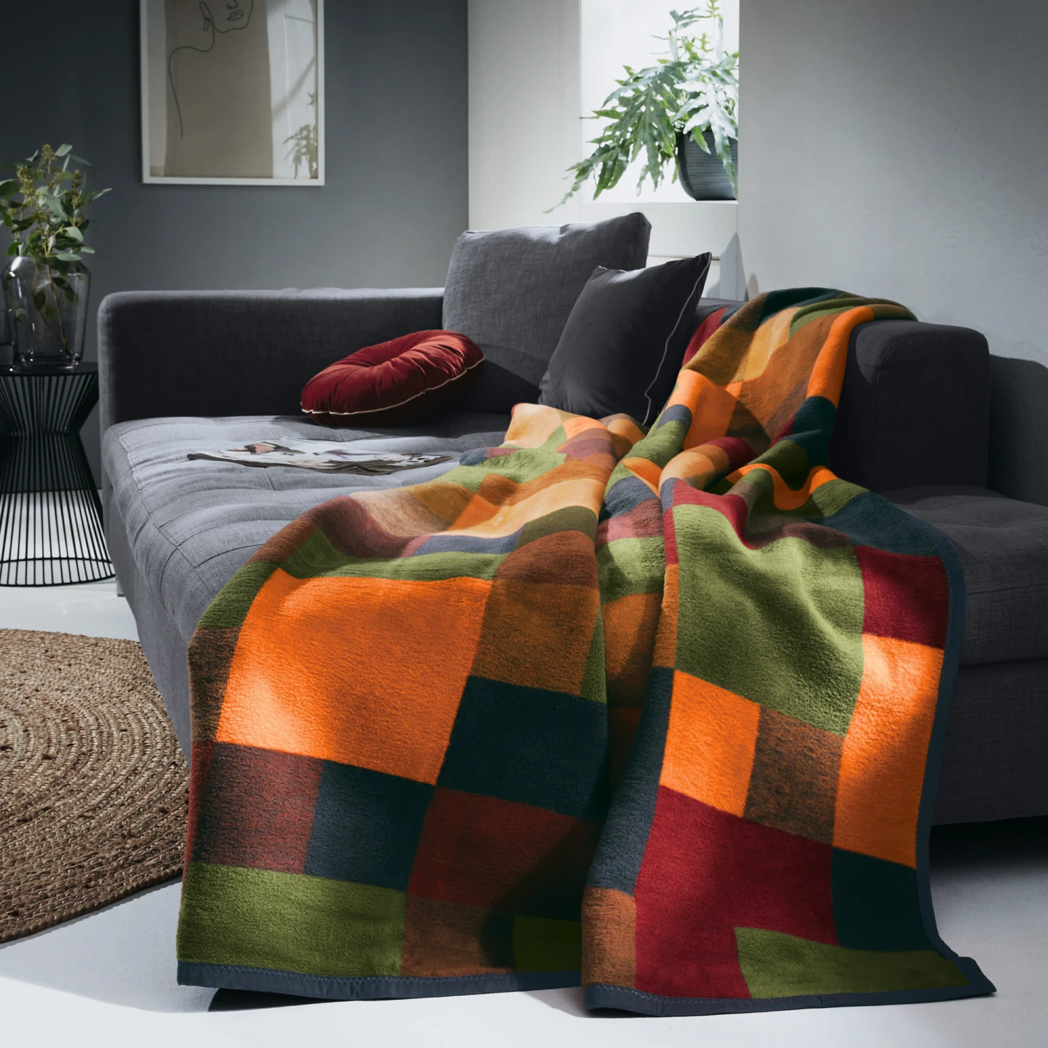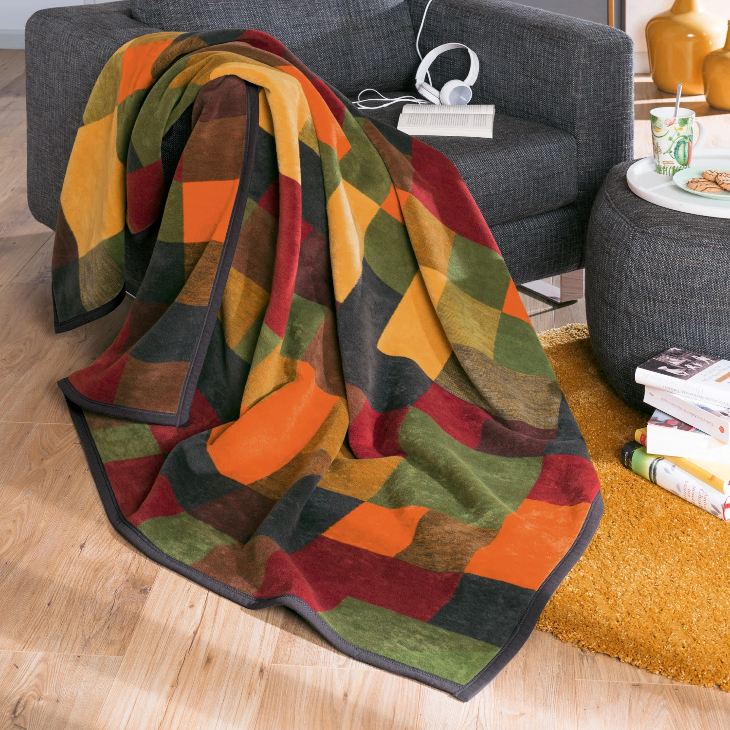 Erwin Müller Jacquard Wohndecke. Ein Traum für gemütliche Stunden auf dem Sofa. Sehr einladend wirkt das fantasievolle Kästchen-Muster in wohnlichen Farben. Gerne lassen Sie sich von der angenehmen Qualität verwöhnen. Sie ist kuschelweich, hautsympathisch, atmungsaktiv, temperaturausgleichend und strapazierfähig. Rundum mit Veloursband eingefasst.